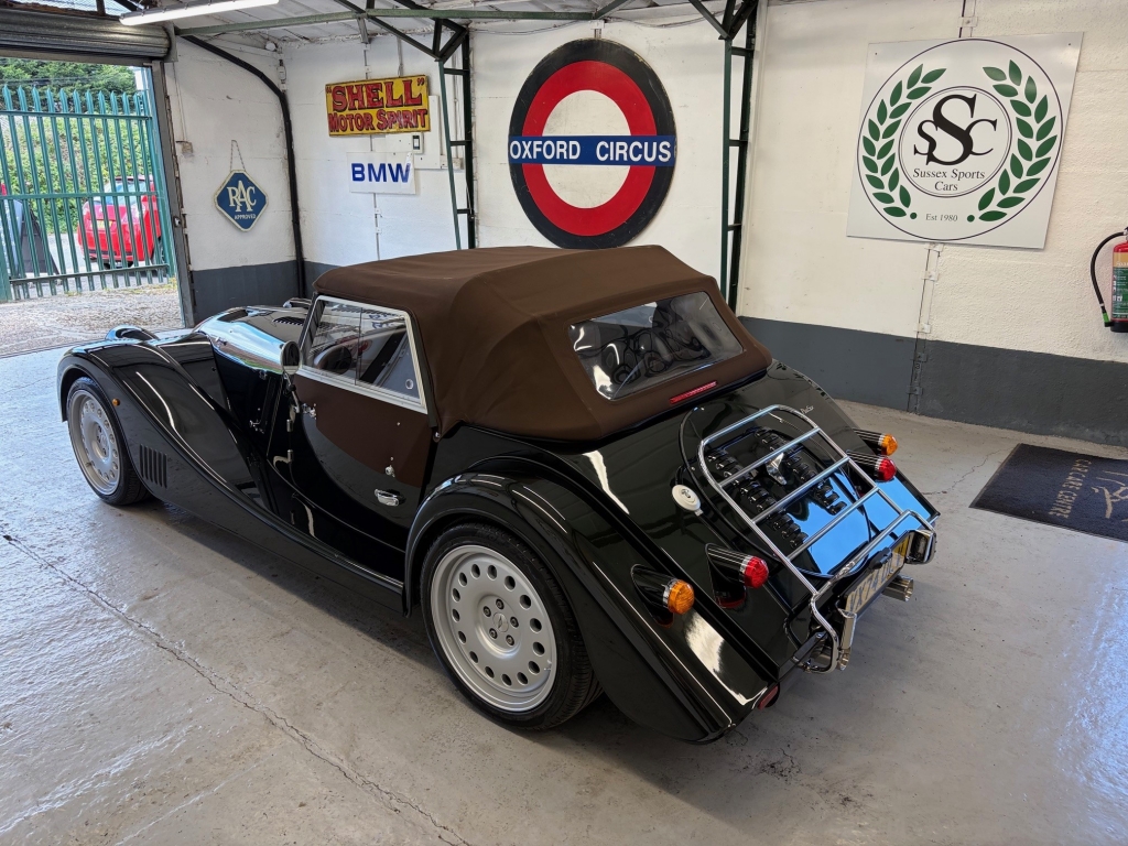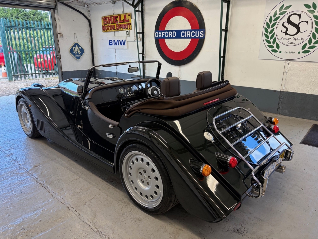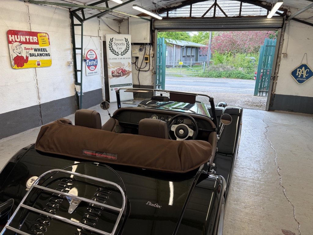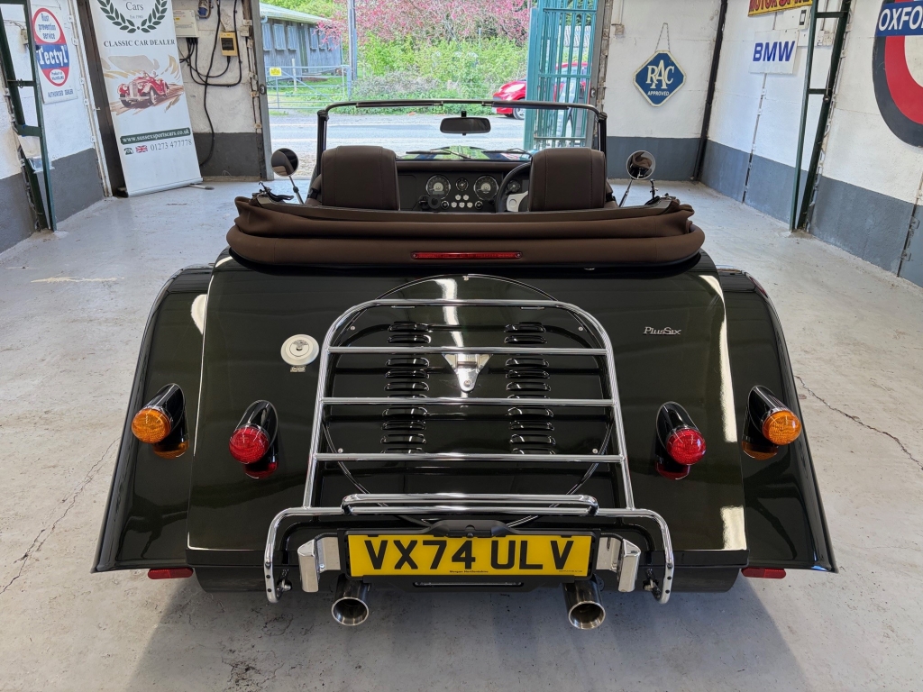 A rare opportunity to own a stunning Morgan Plus Six, finished in elegant Bronze Green Metallic including 6 decals with a luxurious two-tone Sable leather interior, blending timeless British design with modern high-performance engineering. Powered by a 3.0L straight-six engine producing 335 bhp, this car delivers an exhilarating 0–60 mph in just 4.2 seconds, offering sports car performance with unmistakable character.